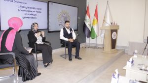 The scientific sessions featured distinguished presenters including Dr. Khanda Yassin, Dr. Marwa Rashid, Dr. Bassin Abdulrazaq (International Speaker), Mr. Goran Noori, and Baran Kamaran (Nursing Student). Each presenter delivered insightful lectures and discussions focusing on the significance of lifestyle choices, early screening, and emotional resilience in overcoming breast cancer.