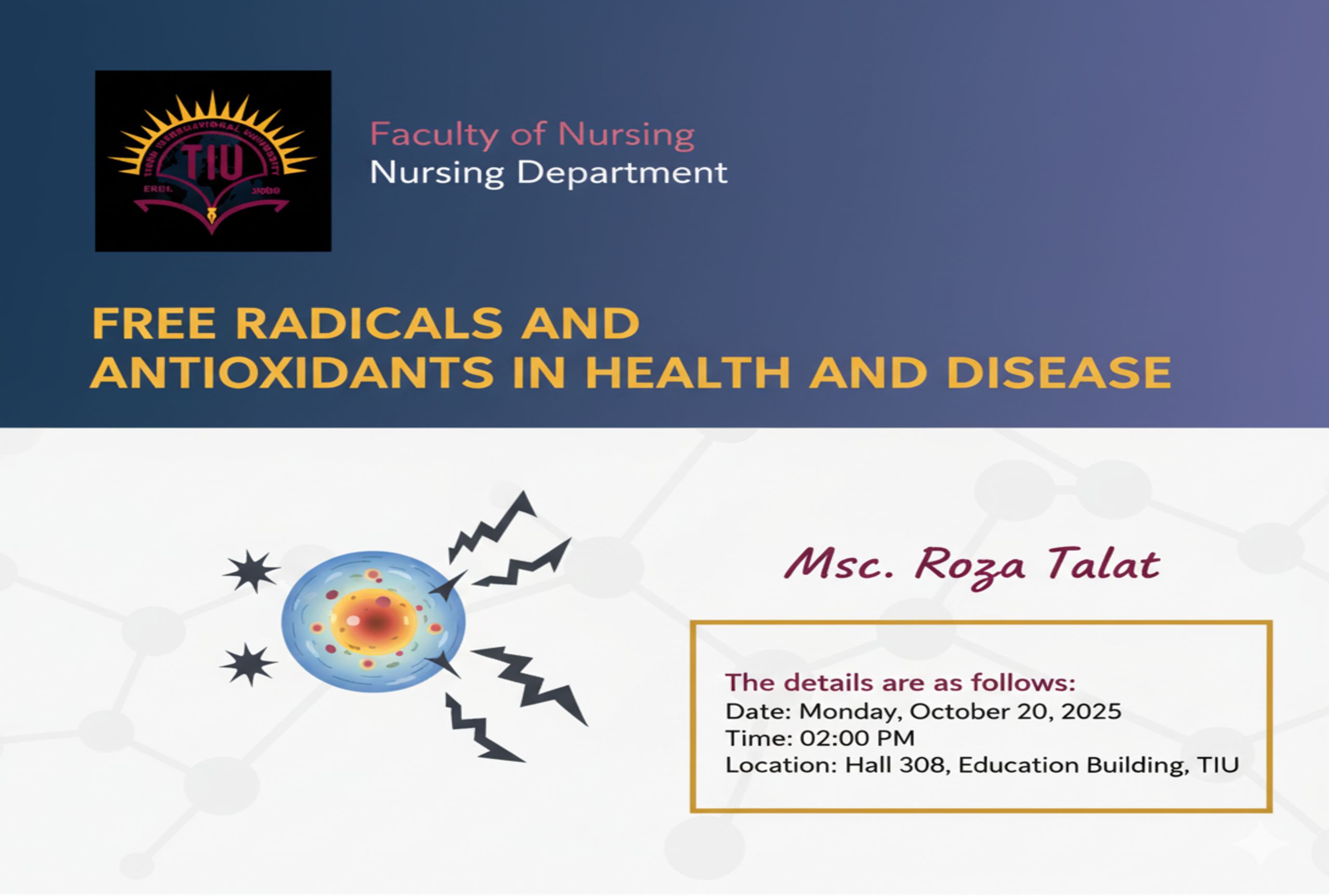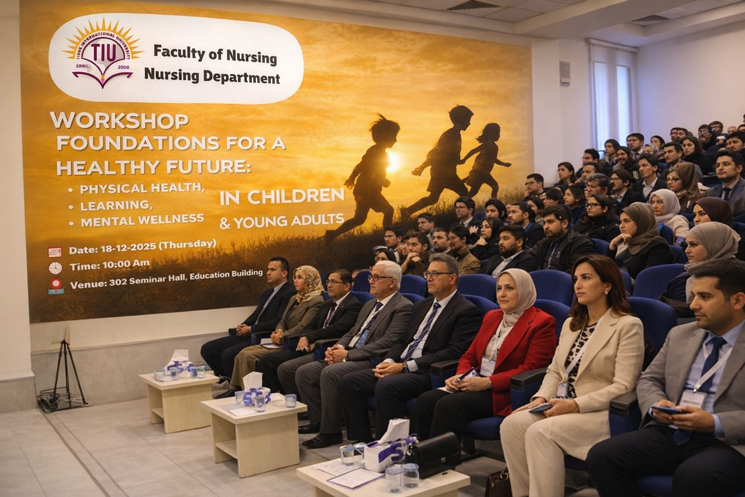 hilal.farouq2025-12-23T12:28:04+00:00Workshop: Foundations for a Healthy Future – Advancing Education and Health for Children and Young Adults The Faculty of Nursing at Tishk International University successfully hosted an interdisciplinary workshop entitled “Foundations for a Healthy Future: Physical Health, Learning, and Mental Wellness in Children & Young Adults” on December 18, 2025, at the Education Building, Conference Hall 302. The workshop officially commenced with an opening speech by Prof. Dr. Hiwa Banna, Dean of Faculty of Nursing, followed by a welcoming address delivered by Assistant.Prof. Dara Abdullah, head of Nursing Department. An introduction to the workshop objectives and structure was then presented [...]
